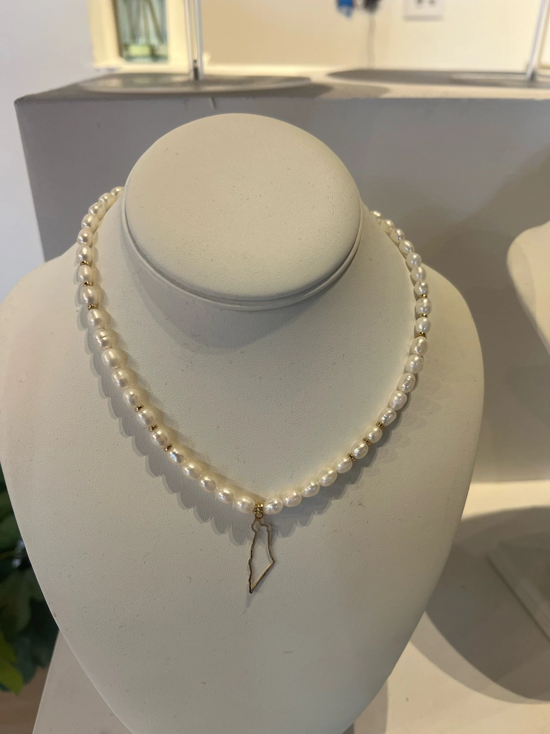Pearl / israel map $80.00 HAMSA NECKLACE with blue and white pearls $80.00 HAMSA NECKLACE Pearl $80.00 STAR OF DAVID NECKLACE $80.00 Chai Neckalce $80.00 STAR OF DAVID NECKLACE big beads $80.00